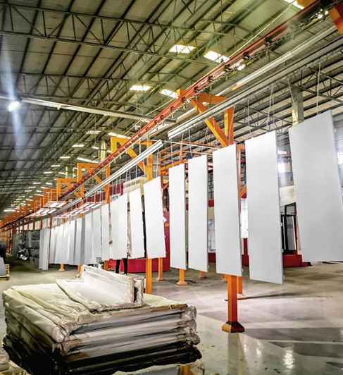 抗震、抗風(fēng):擁有全數(shù)控轉(zhuǎn)塔沖床15臺,折彎機近60臺,剪板機30臺,雕刻機20臺;專業(yè)的厚板(1.0-4.0mm)零色差生產(chǎn)工藝,涂層質(zhì)量達到進口鋁單板水平;